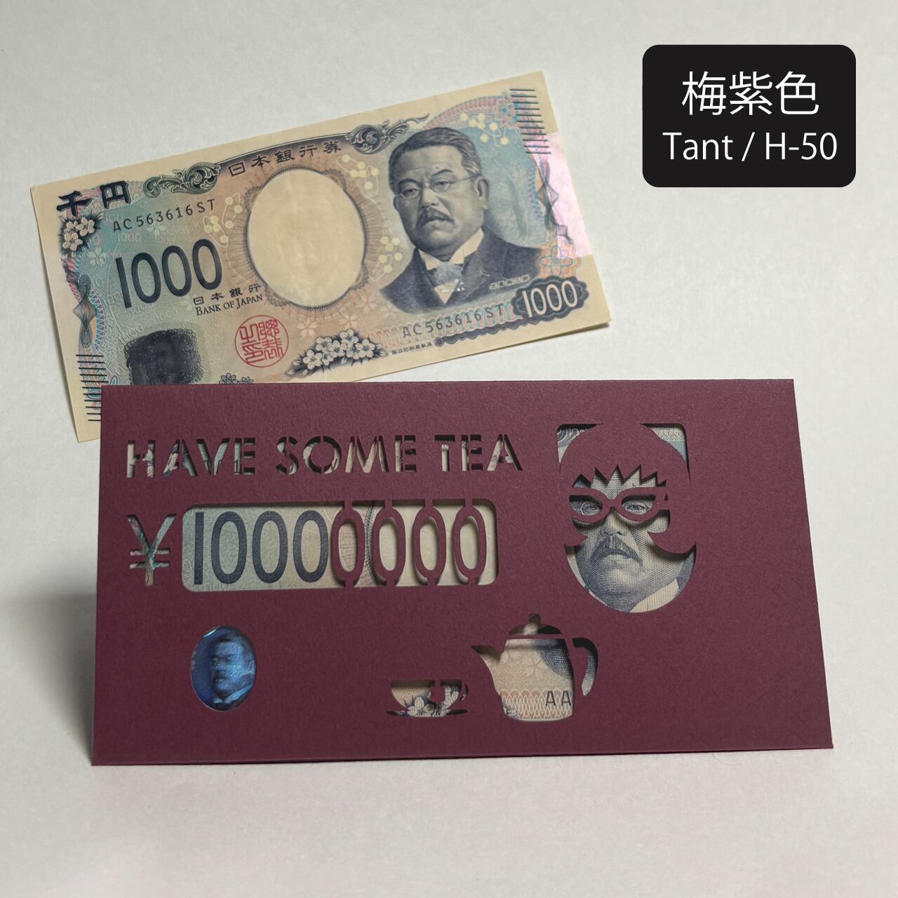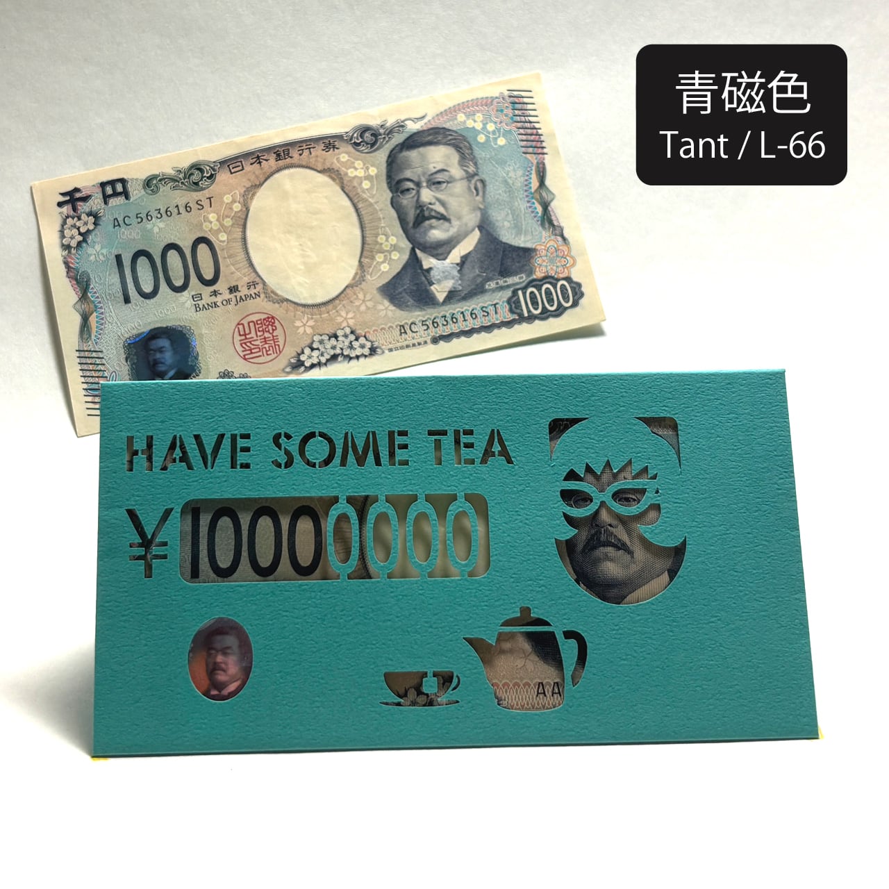 お札に描かれた著名人が仮装するユニークなデザインで、切り絵で「お札を入れると増額した⁈」ような切り絵デザインが特徴。