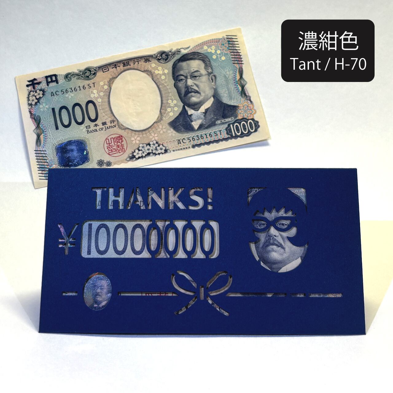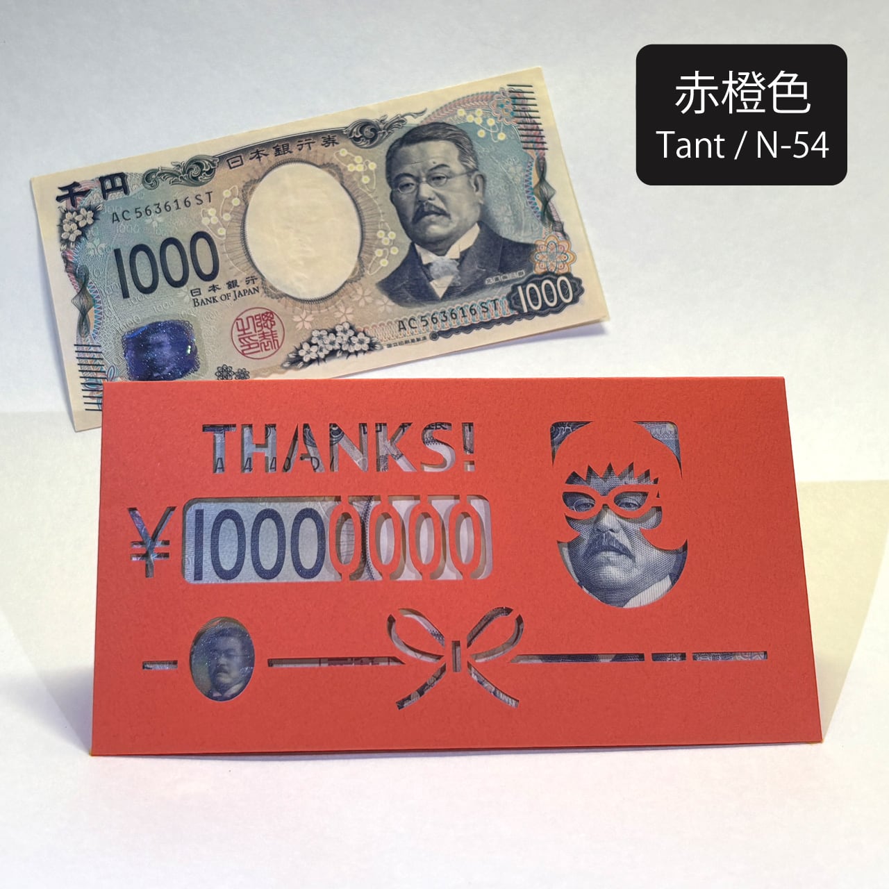 お札に描かれた著名人が仮装するユニークなデザインで、切り絵で「お札を入れると増額した⁈」ような切り絵デザインが特徴。