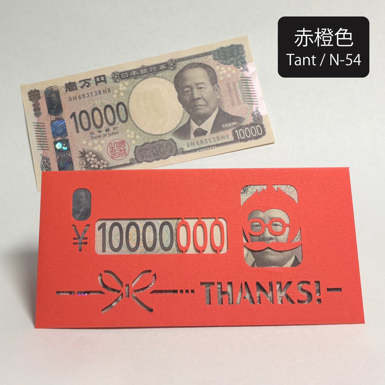 お札に描かれた著名人が仮装するユニークなデザインで、切り絵で「お札を入れると増額した⁈」ような切り絵デザインが特徴。