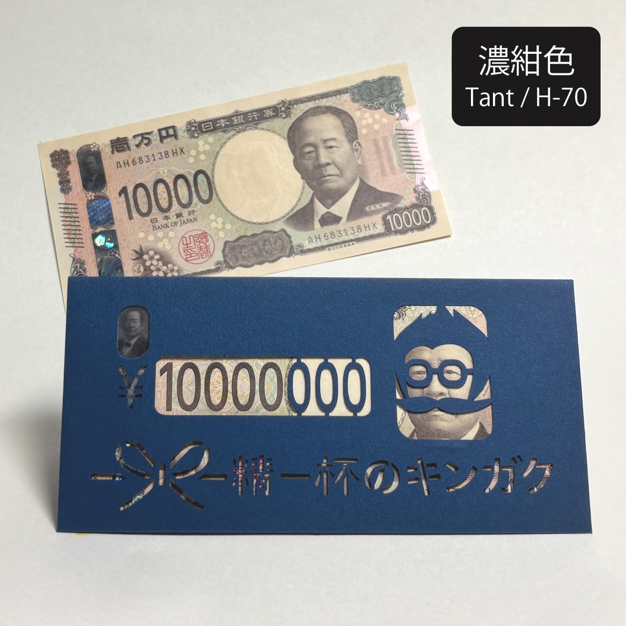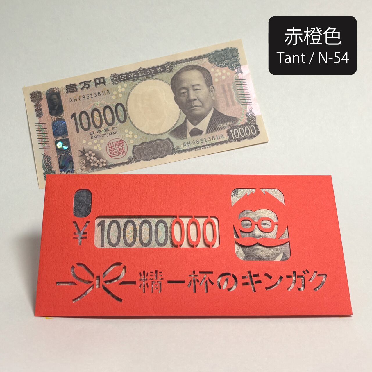お札に描かれた著名人が仮装するユニークなデザインで、切り絵で「お札を入れると増額した⁈」ような切り絵デザインが特徴。