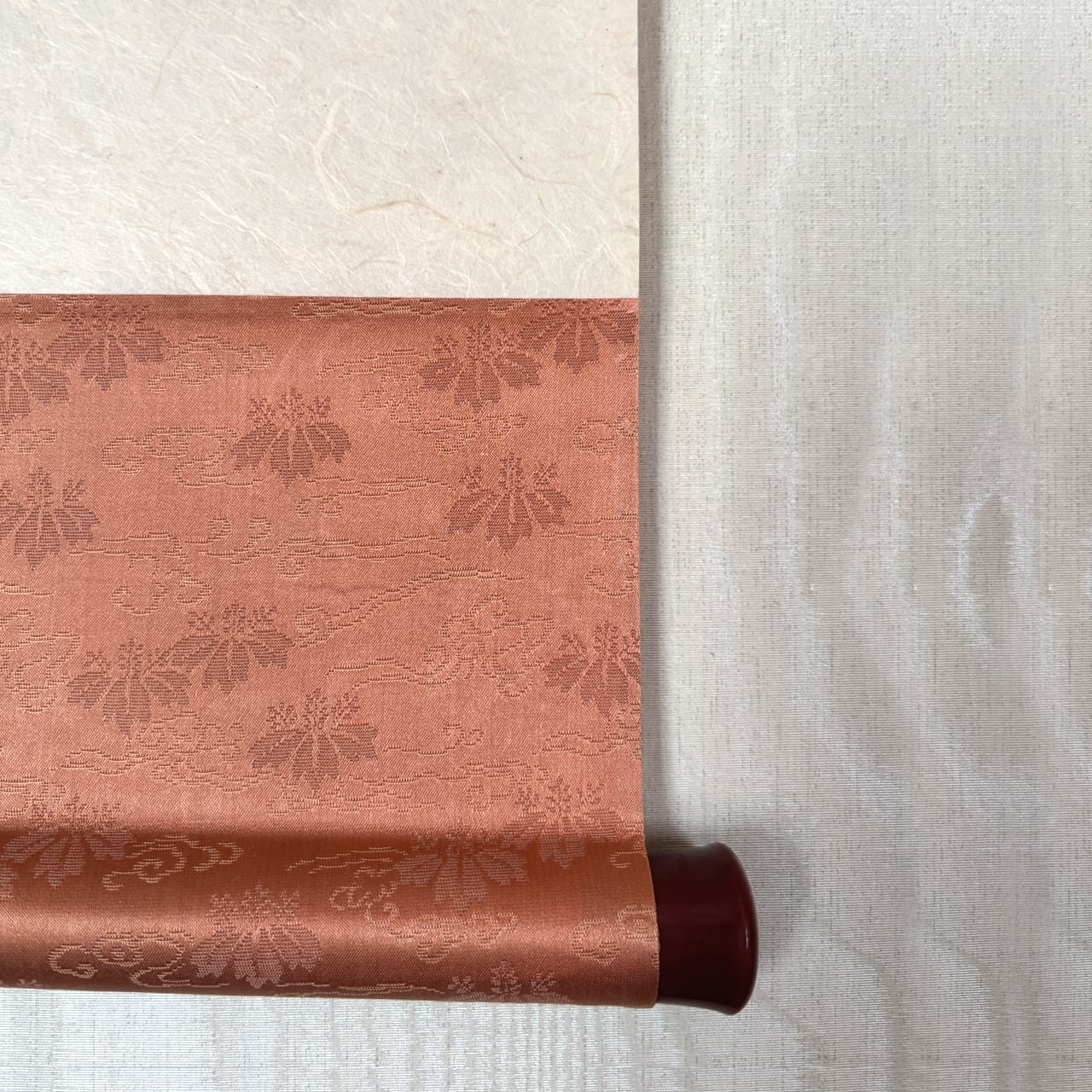 長年使用してもクルクルと内巻きにならないように、掛軸両端は耳折りしております。