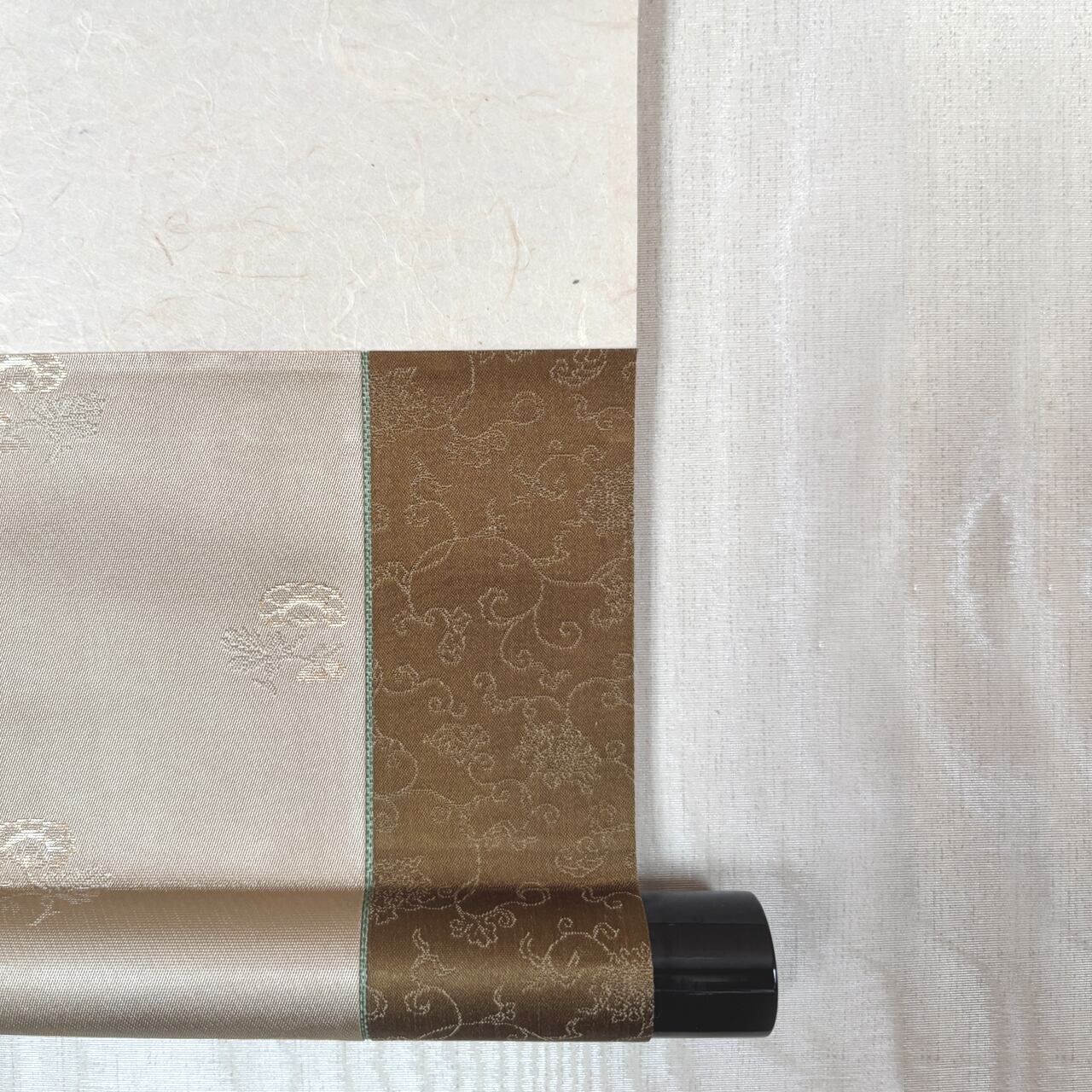 長年使用してもクルクルと内巻きにならないように、掛軸両端は耳折りしております。