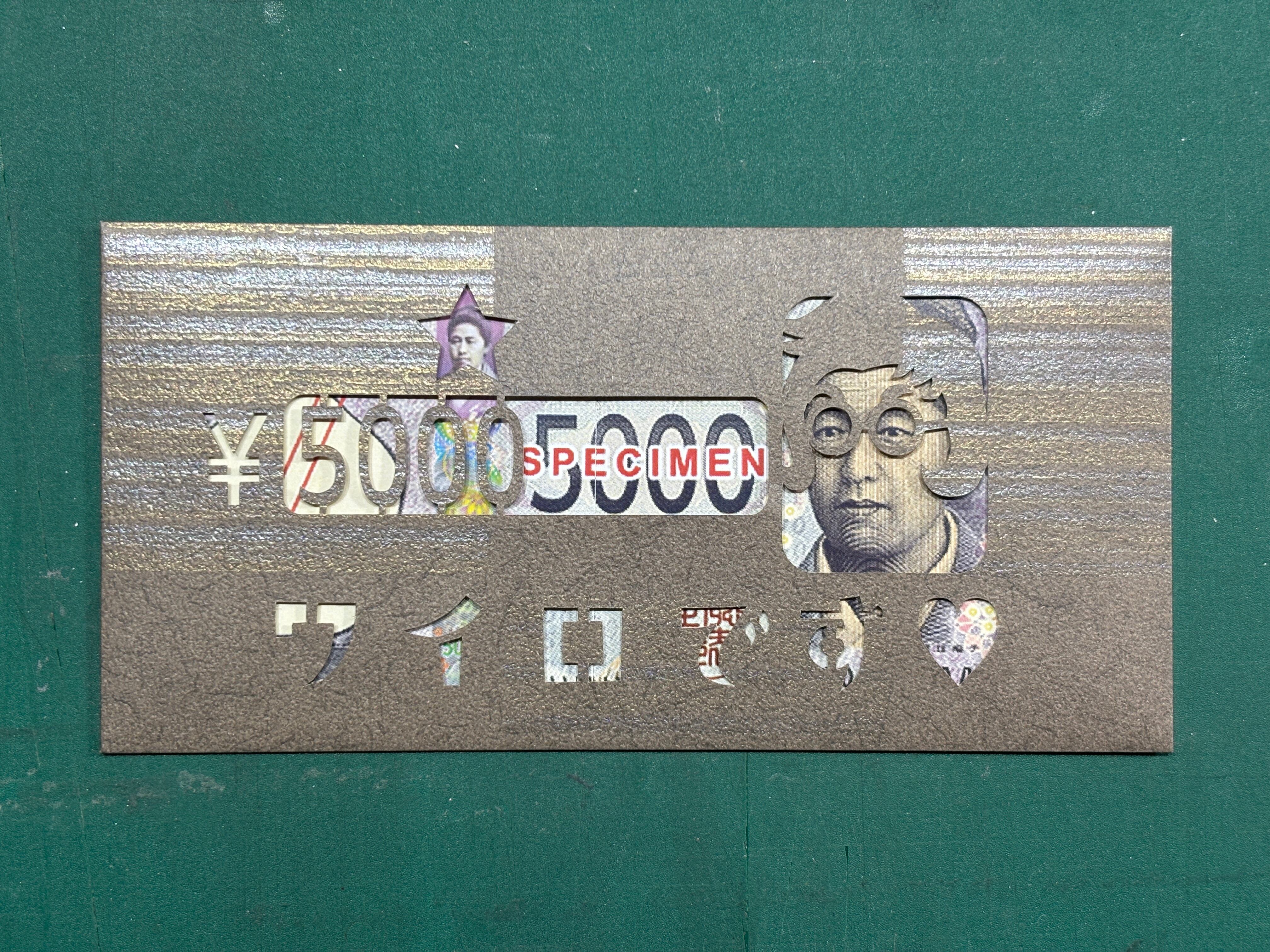 「億萬金封・丸メガネ/五千円札用 - ぶろっく柄-」。