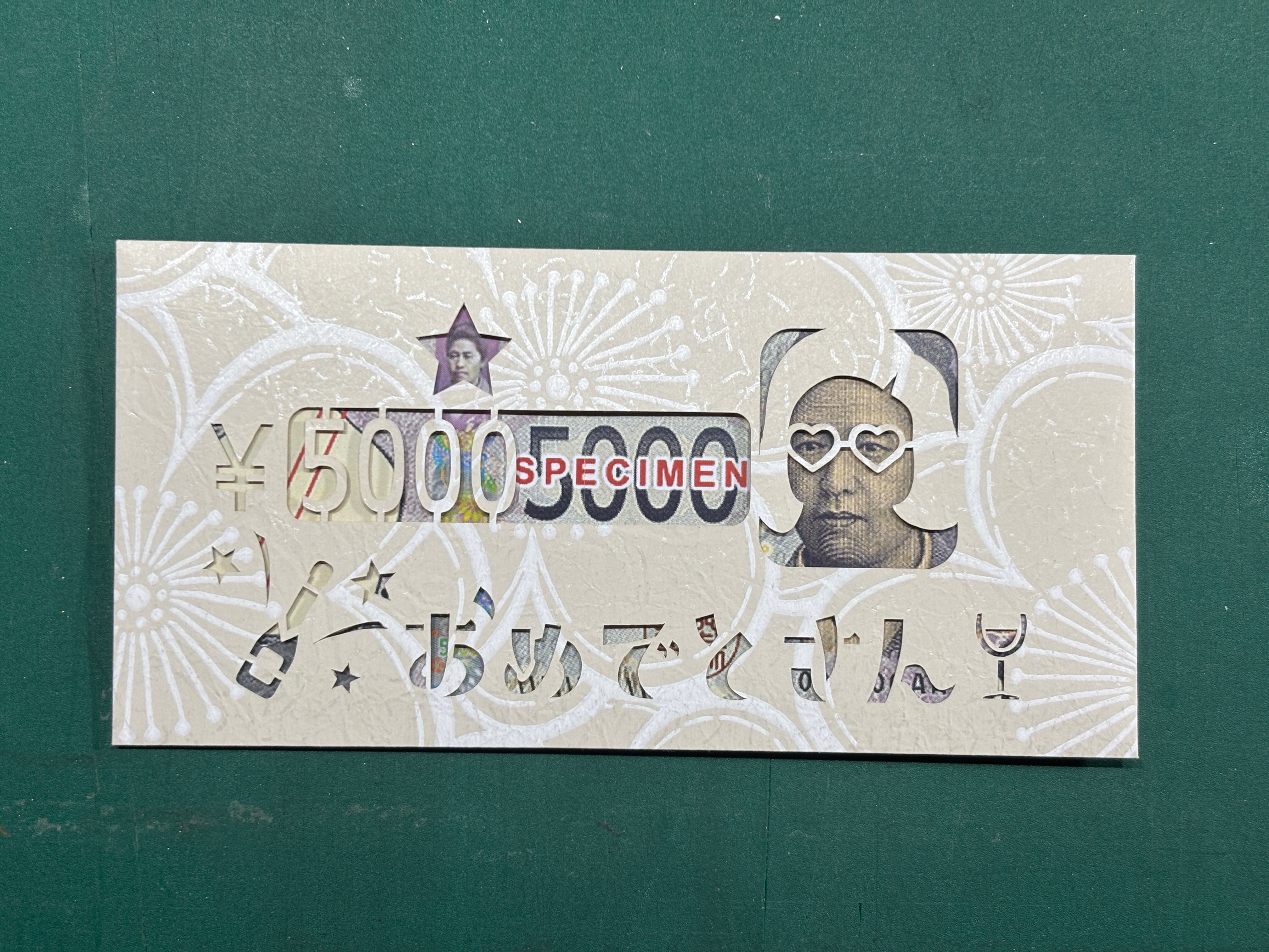 おめでとう!の気持ちを大阪弁で。「億萬金封・ハートめがね/五千円札用 - 大梅-」。