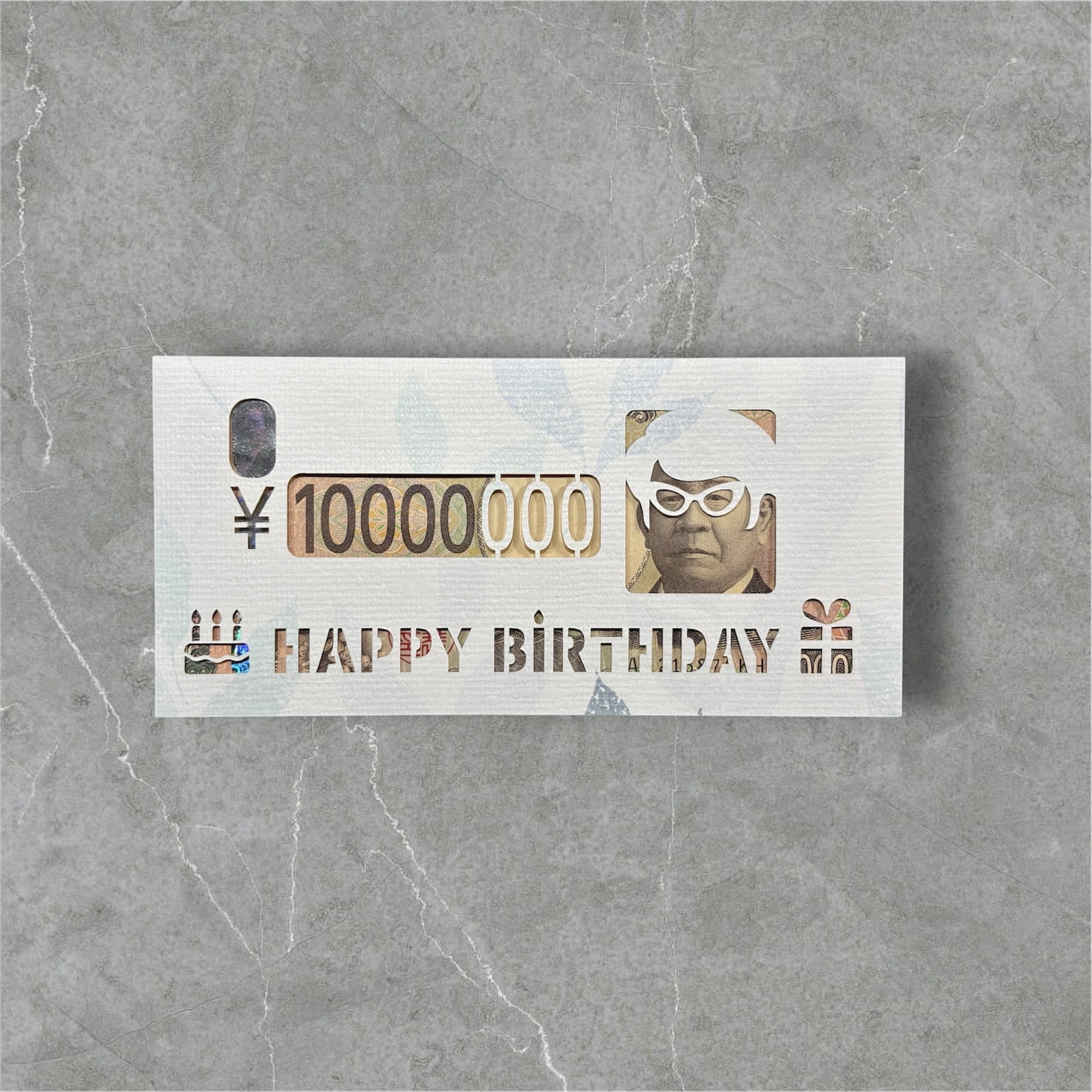 億萬金封・Happy Birthday 一万円札用/ひちさん(白色に淡い青・leaf)