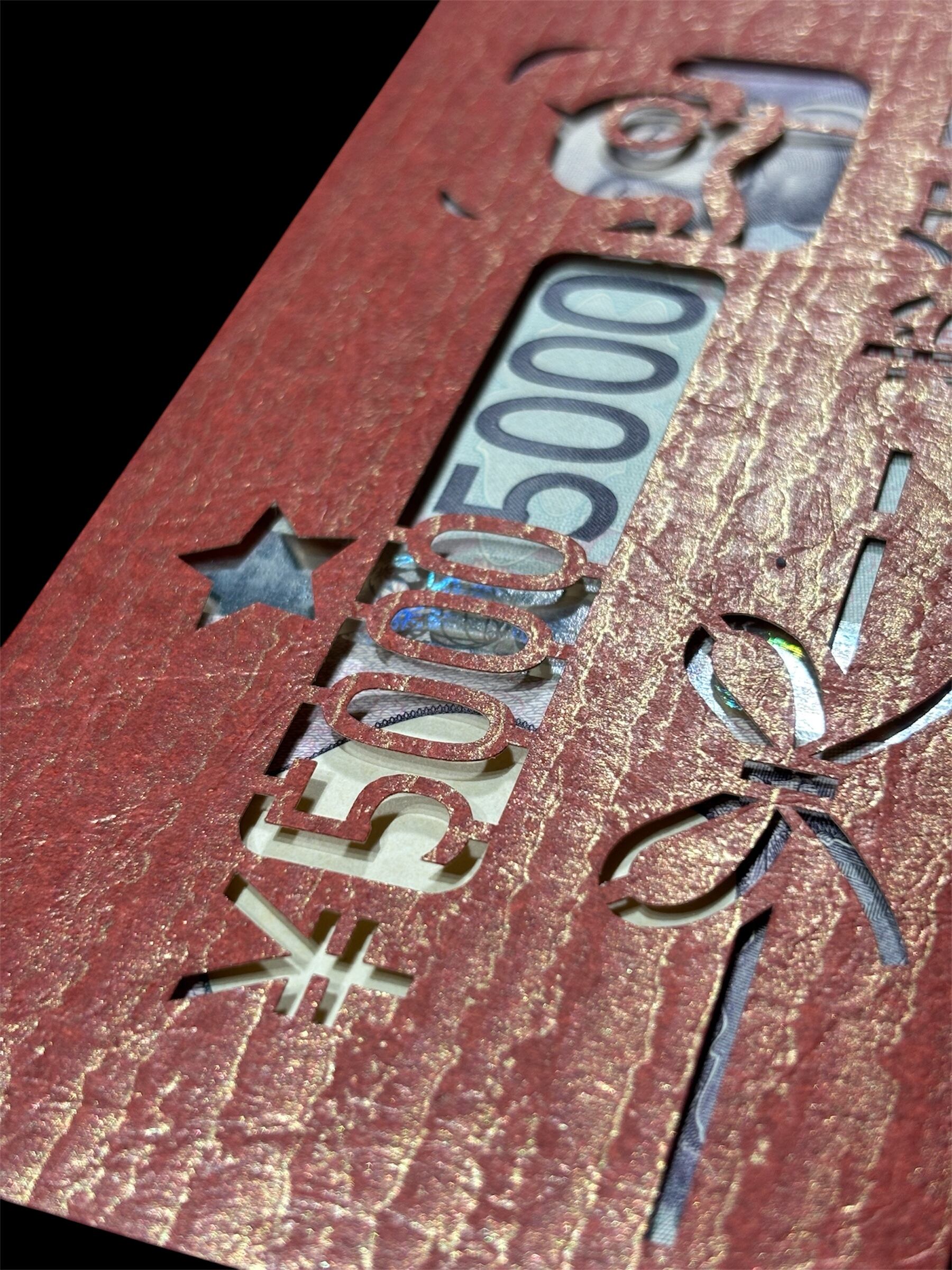 切り絵によって現れるのは、“五千五千円”。