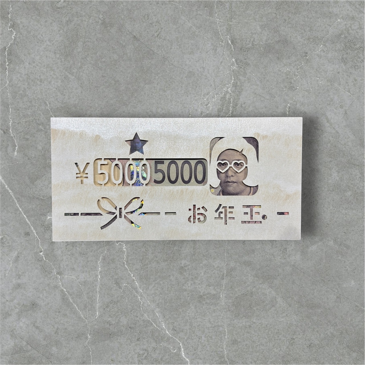 億萬金封・お年玉 五千円札用/ハートめがね(薄茶色)