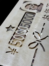 切り絵によって現れるのは、“五千五千円”。