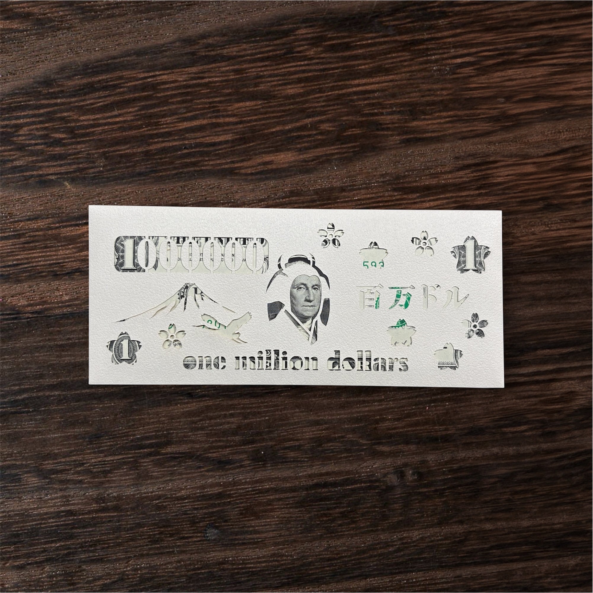 US1ドル札を入れると、切り絵の仕掛けで“100万ドル”に見える、ちょっと粋な金封です。