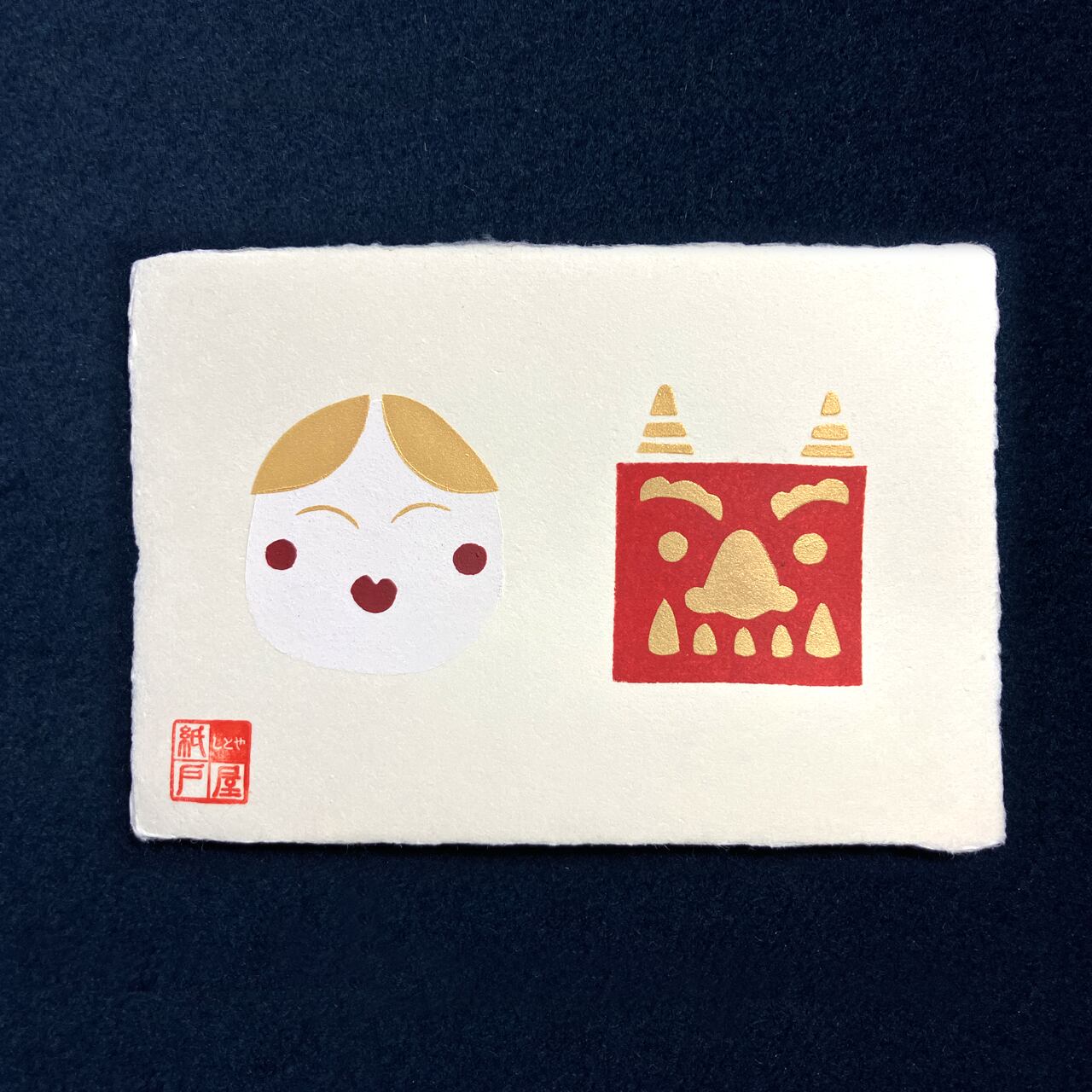手刷りハガキ(節分・赤)