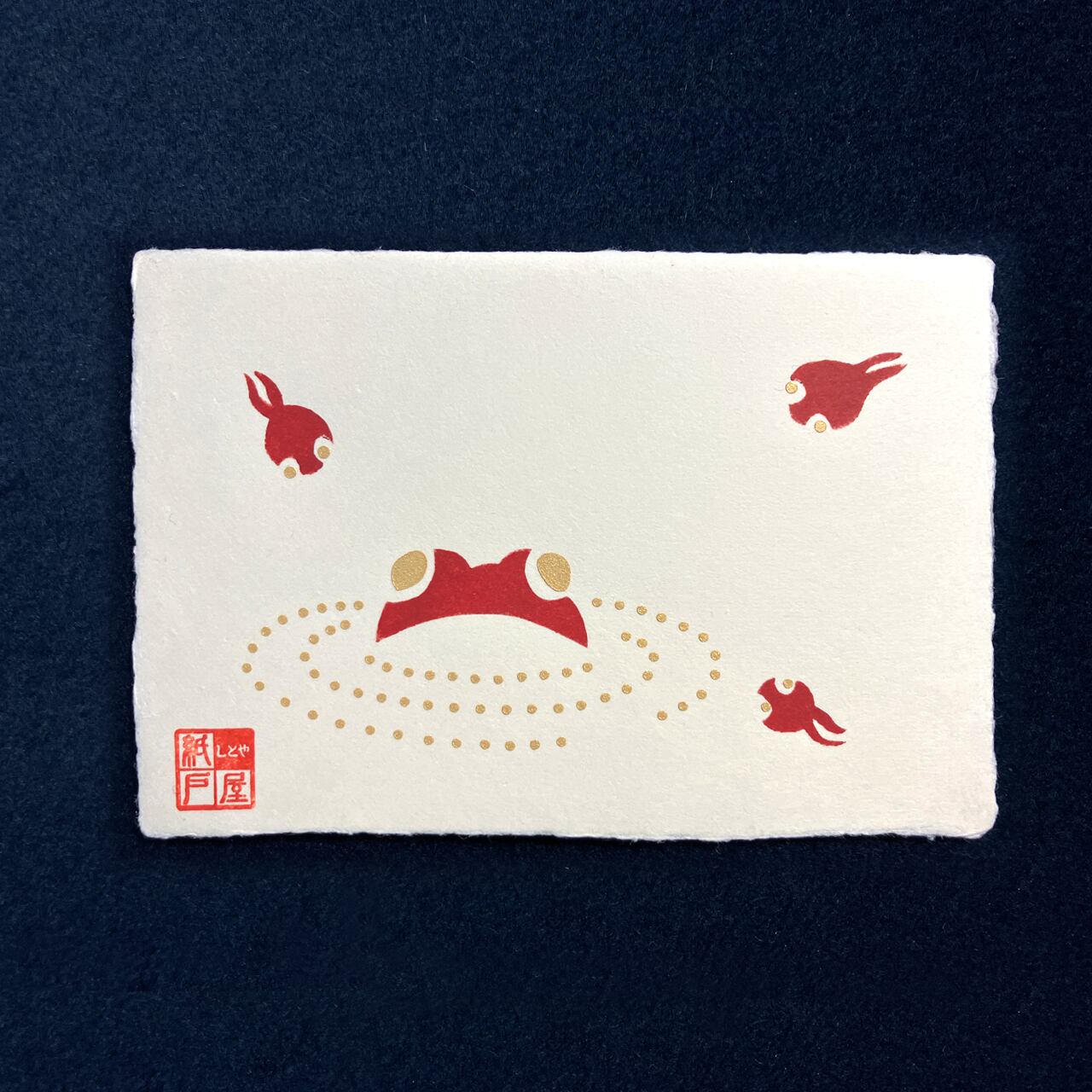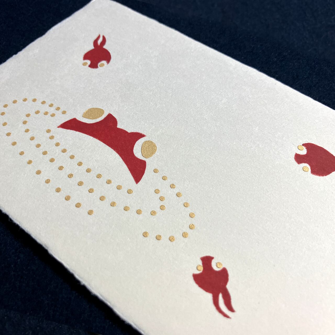 手づくりの温もりが感じられる、四季の手刷りハガキ。越前手漉きハガキを使用し、季節感を表現したさまざまなデザインが特徴です。色胡粉や金パール、雲母、墨などの天然画材を用いて、一枚一枚丁寧に手刷りで仕上げています。