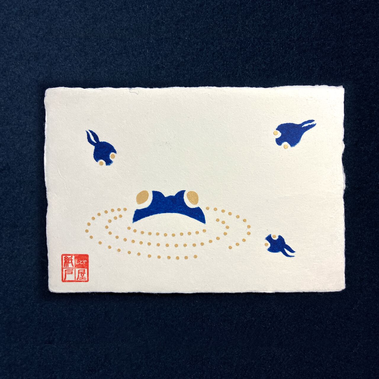 かえるの鳴く時期6月〜8月、かえるとオタマジャクシの柄です。
